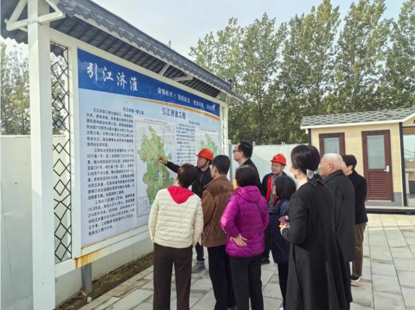随后,老干部们赶赴引江济淮二期工程蒙城站建设现场。工地上机械轰鸣,建设者们正加紧施工,一派繁忙有序的景象。据介绍,蒙城站作为涡河线首级泵站,计划2026年建成投用。该工程建成后将有效优化区域水资源配置,助力皖北3000万群众实现地下水水源替换,对改善城乡供水、保障工农业用水意义重大。老干部们详细询问工程进度与技术细节,对这一民生工程的建设成效给予高度评价。